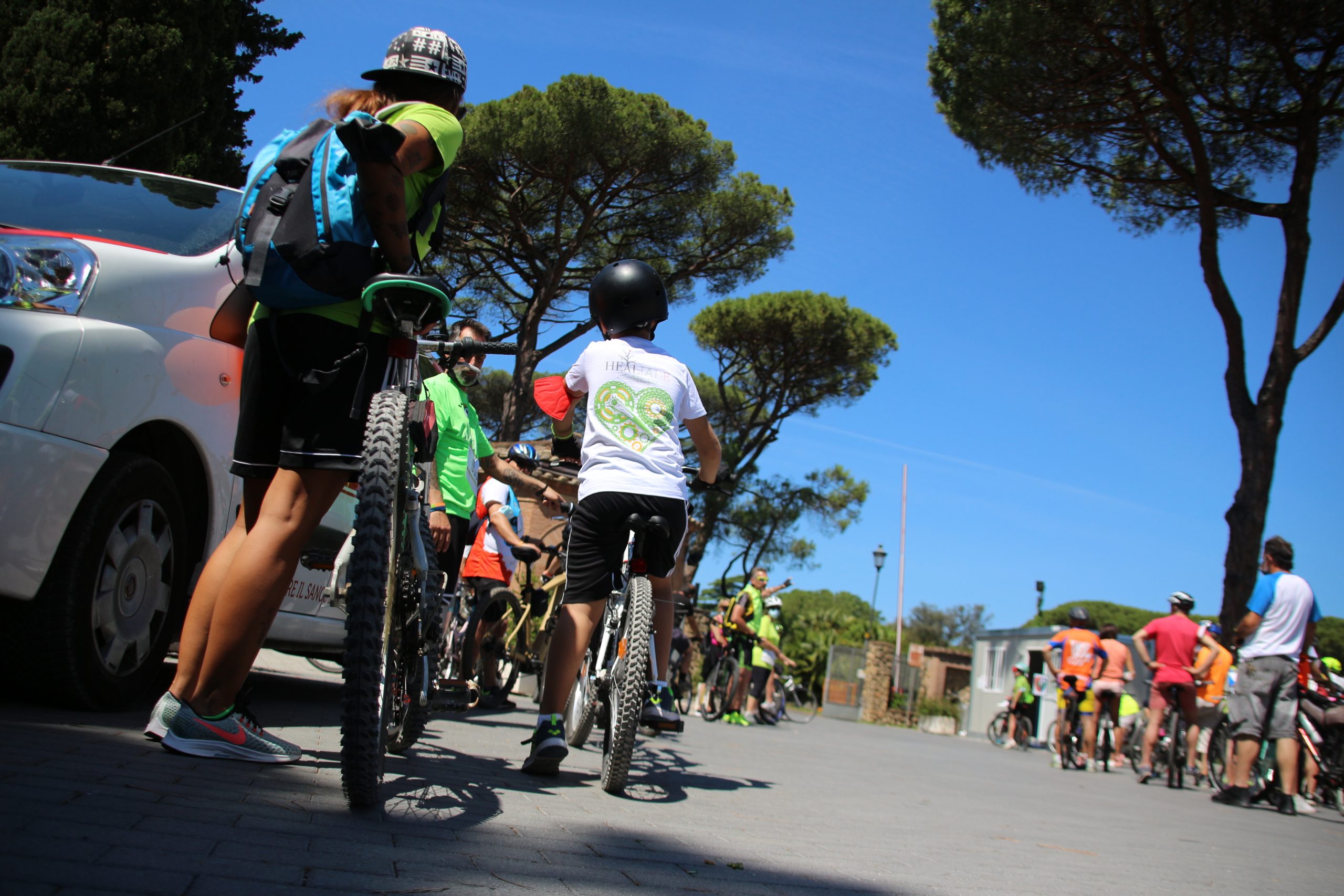 La partenza è stata emozionante e festosa. La carovana colorata di ciclisti ha potuto godere di un percorso unico: le vestigia dell’antica città di Ostia, perfettamente preservate all’interno del Parco Archeologico di Ostia Antica.